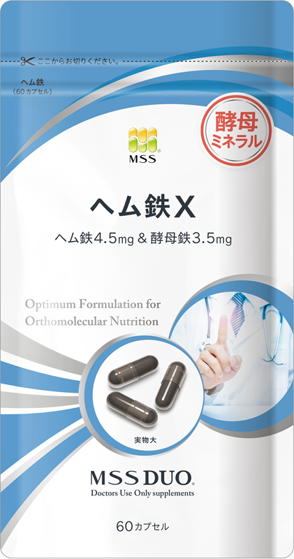 1粒にヘム鉄4.5mgと酵母鉄3.5mg、合計8mgの鉄を配合し、共に働くミネラル(亜鉛、銅、マンガン、セレン)も組み合わせました。(1日の目安:3〜4粒)